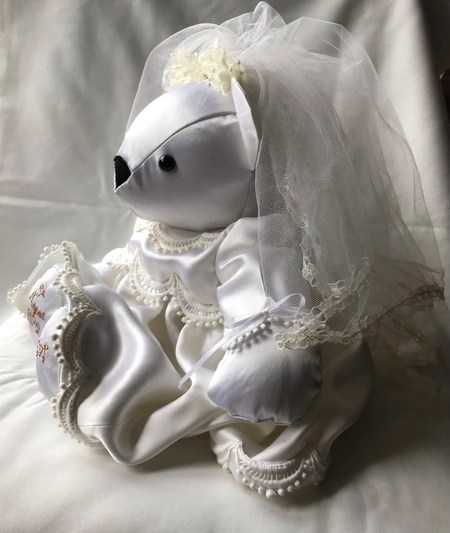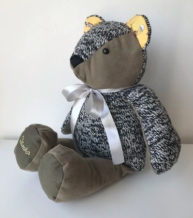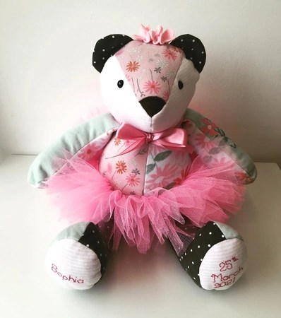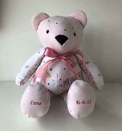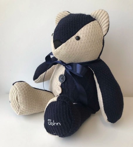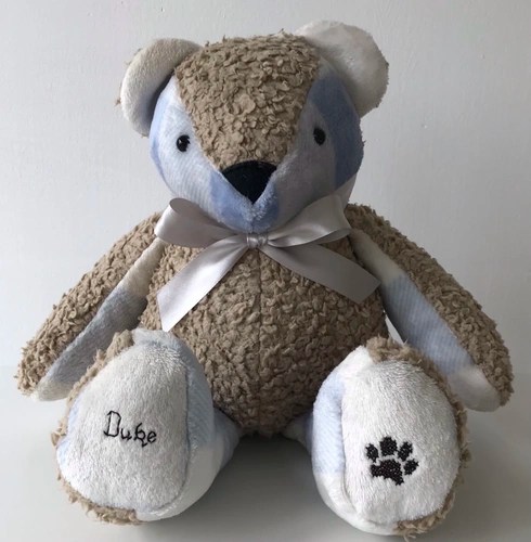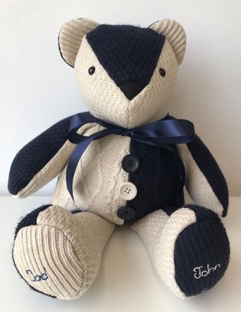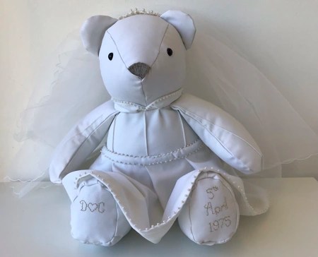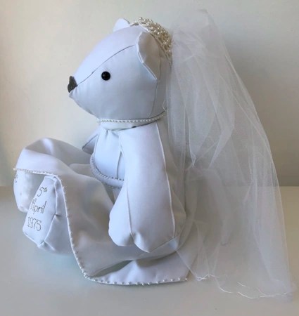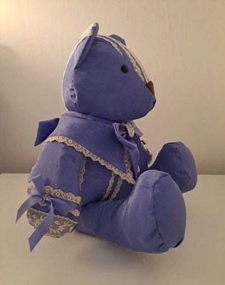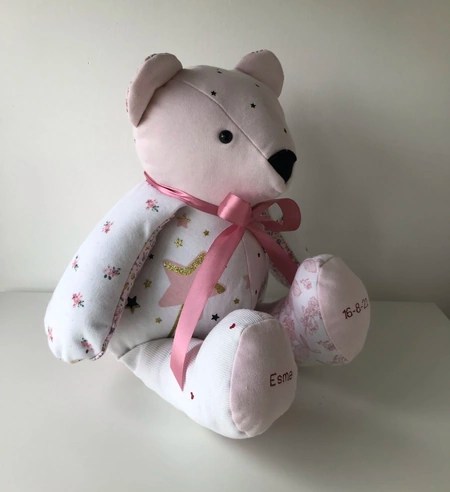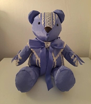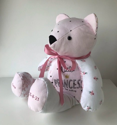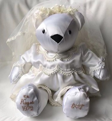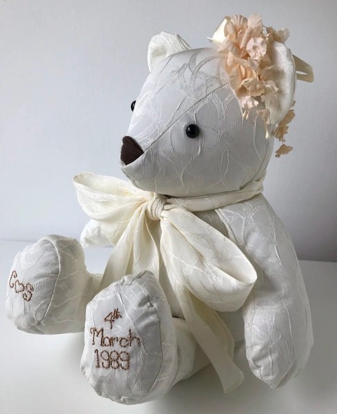Our memory bears can be in remembrance of a loved one, or to celebrate and remember a happy moment in time. We can make bears from all types of clothing, including wedding dresses! We also make gorgeous birth weight bears from baby’s clothing, so you can hold the bear in your arms and feel the weight, which is designed and made to be exactly the same as when the baby was born.