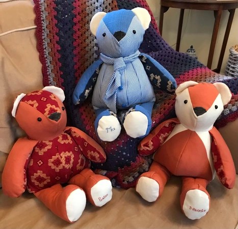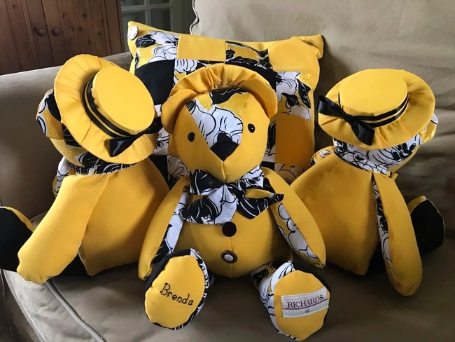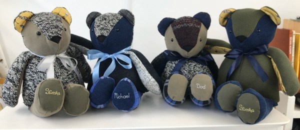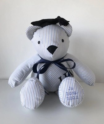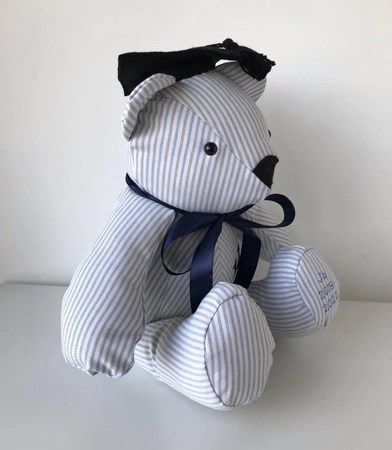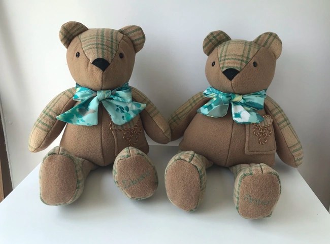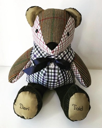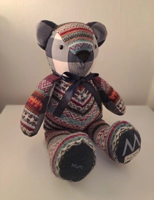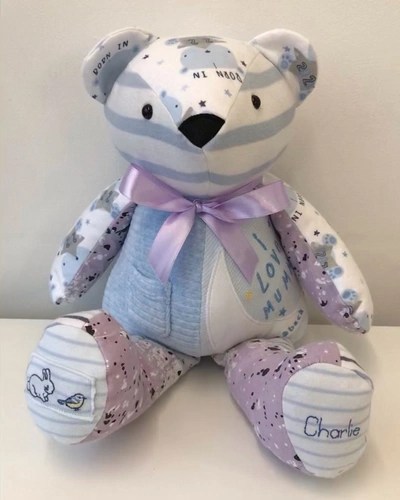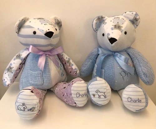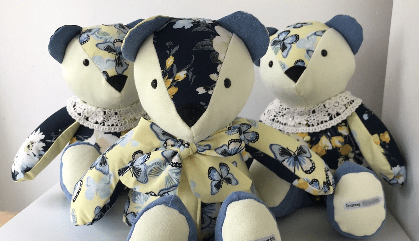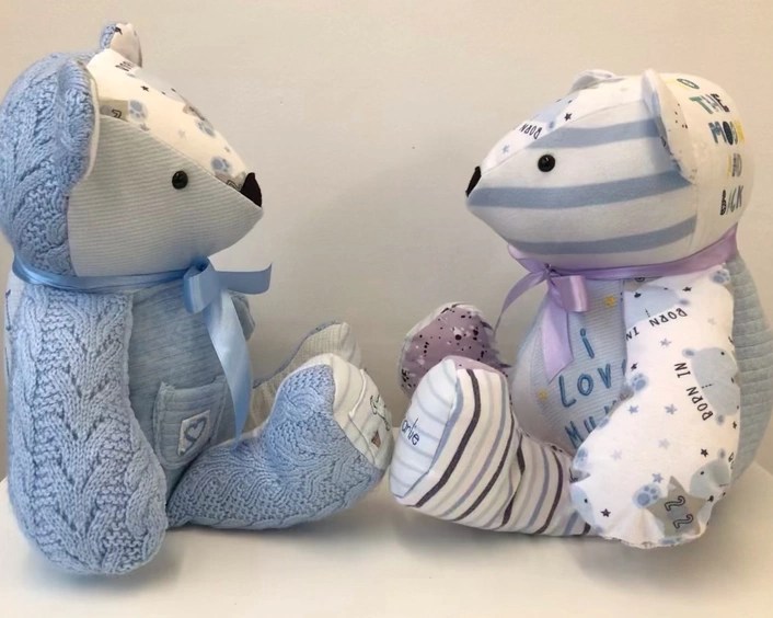 Keepsakes to treasure for a lifetime, our Memory Bears are hand made with love and care and the utmost attention to detail. All you need to do is provide us with some items of clothing and let us know if you have anything special you’d like to keep or highlight, such as buttons, lace, bows or specific embroidery. We will do the rest!